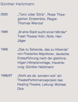 Günther Heitzmann - Vita Günther Heitzmann Fotos Günther Heitzmann Video Günther Heitzmann Hörbeispiele Günther Heitzmann Regie Günther Heitzmann Kontakt