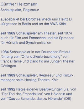 Günther Heitzmann - Vita Günther Heitzmann Fotos Günther Heitzmann Video Günther Heitzmann Hörbeispiele Günther Heitzmann Theater Günther Heitzmann Regie Günther Heitzmann Kontakt